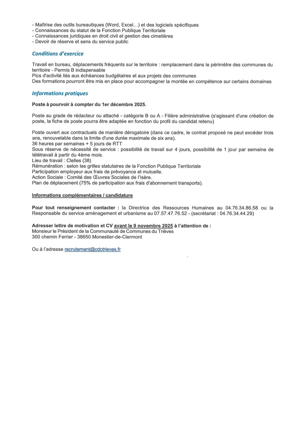 Veuillez trouver une offre d'emploi pour la Communauté de communes du Trièves.