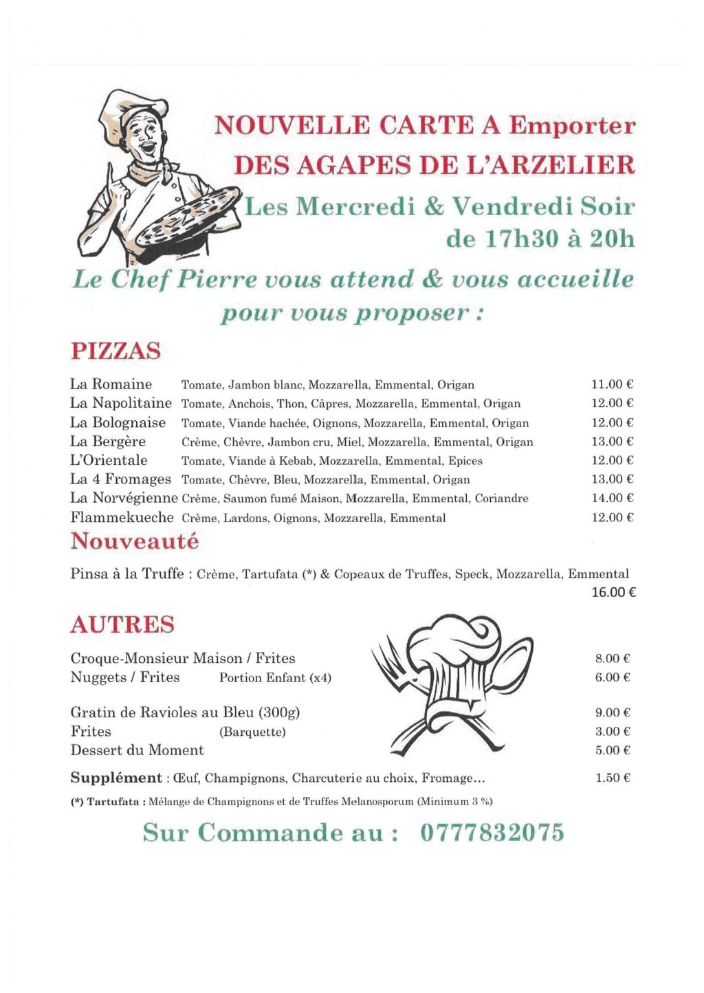 NOUVELLE CARTE À EMPORTER DES AGAPES DE L'ARZELIER