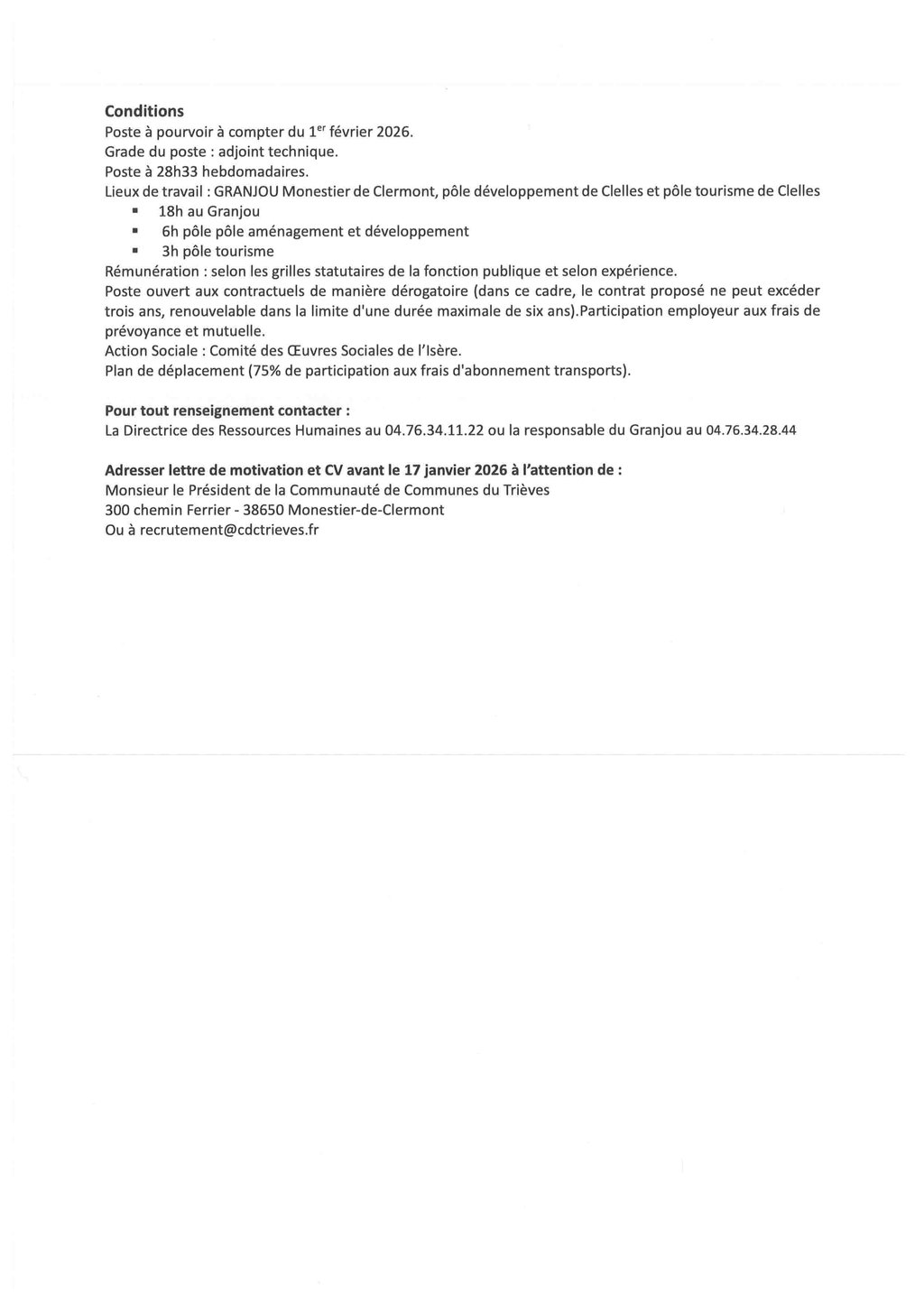 Veuillez trouver ci-joint deux offres d'emploi pour la CCT.