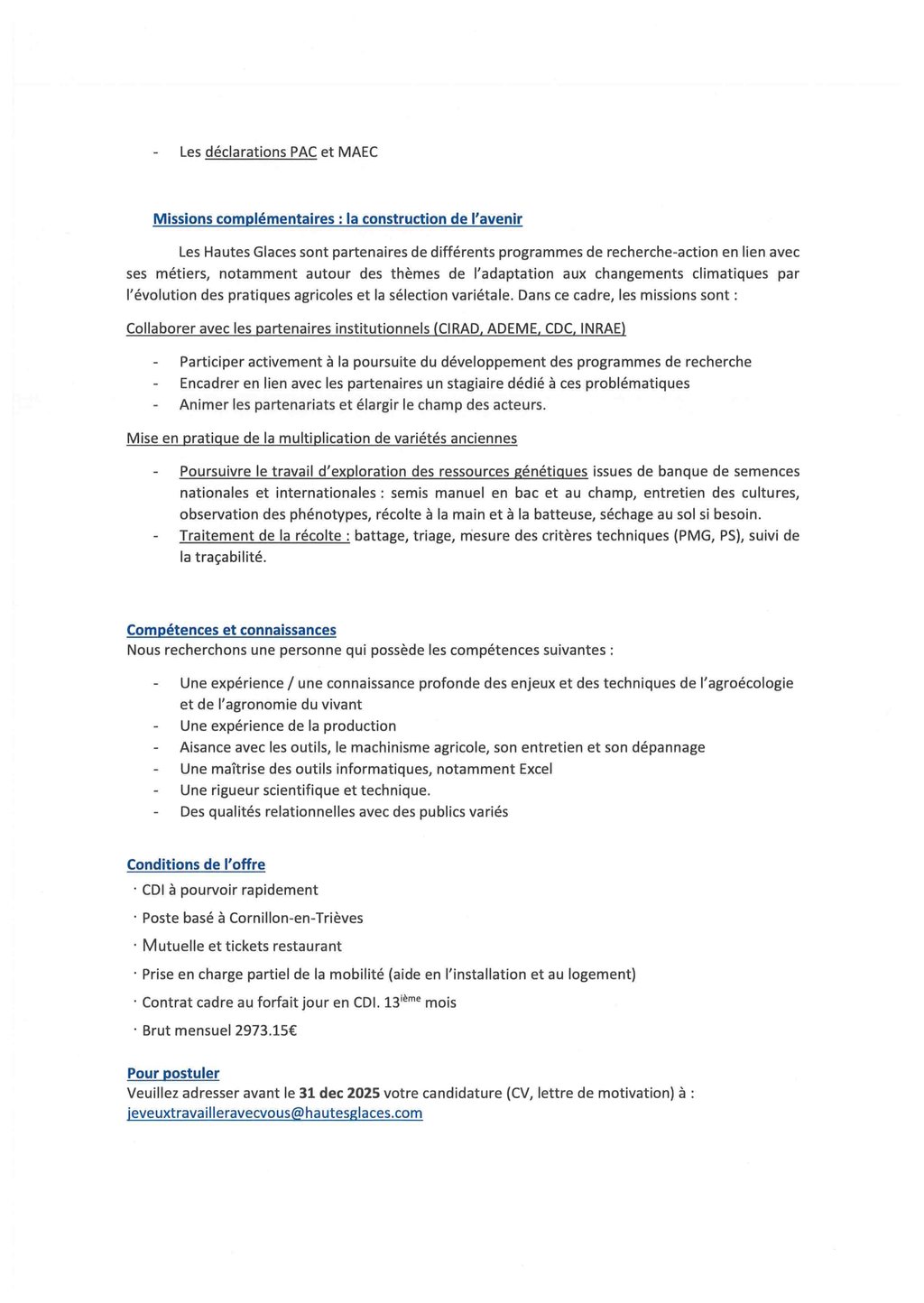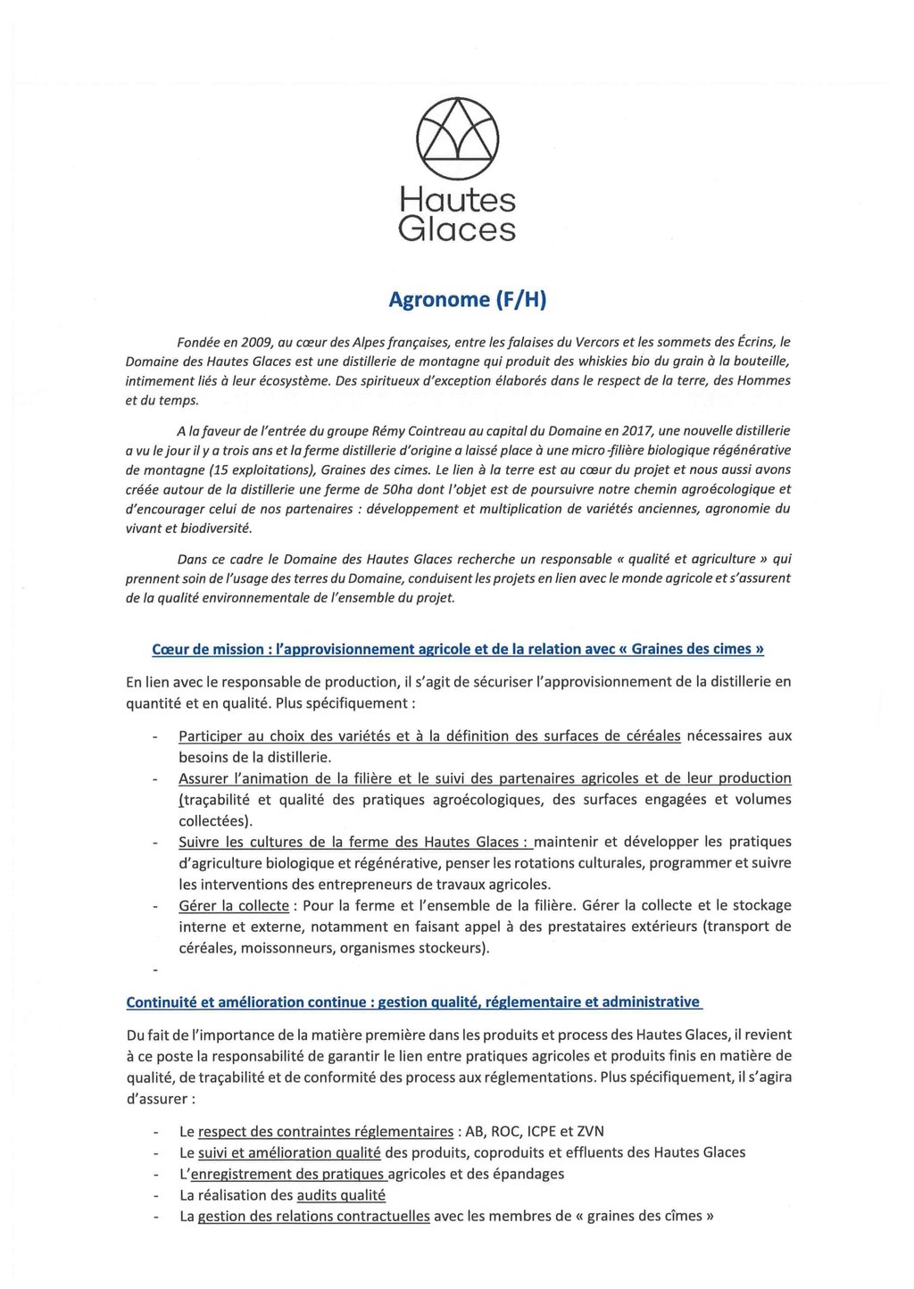 Responsable « Qualité et Agriculture » Agronome pour notre Équipe Hautes Glaces.